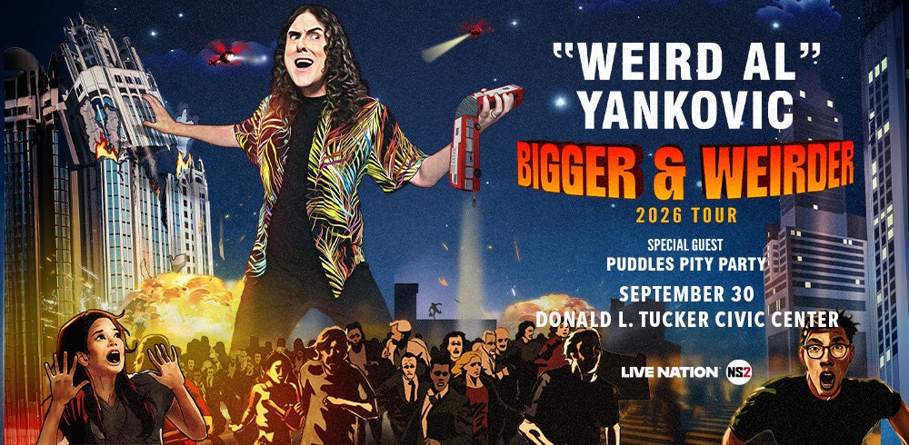 Weird Al brings his legendary full-production multimedia comedy rock show back to the concert stage with the BIGGER & WEIRDER 2026 Tour, playing his iconic hits as well as some never-performed-live-before fan favorites. Al’s long-time band is joined by four additional players to create a super-sized concert experience.